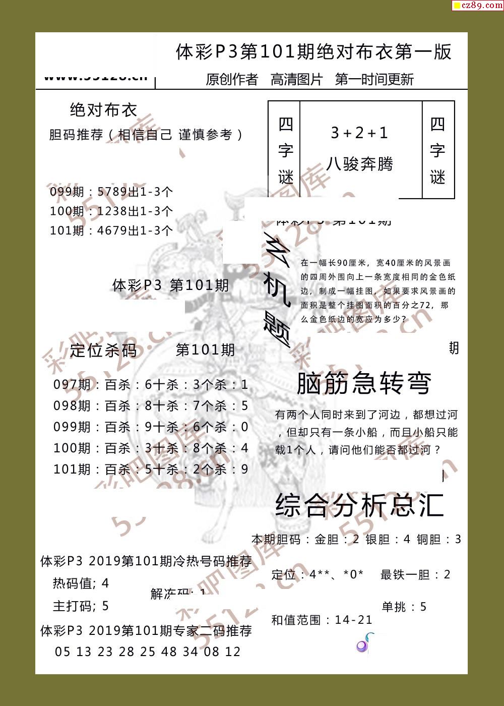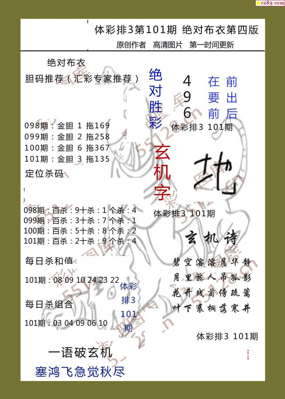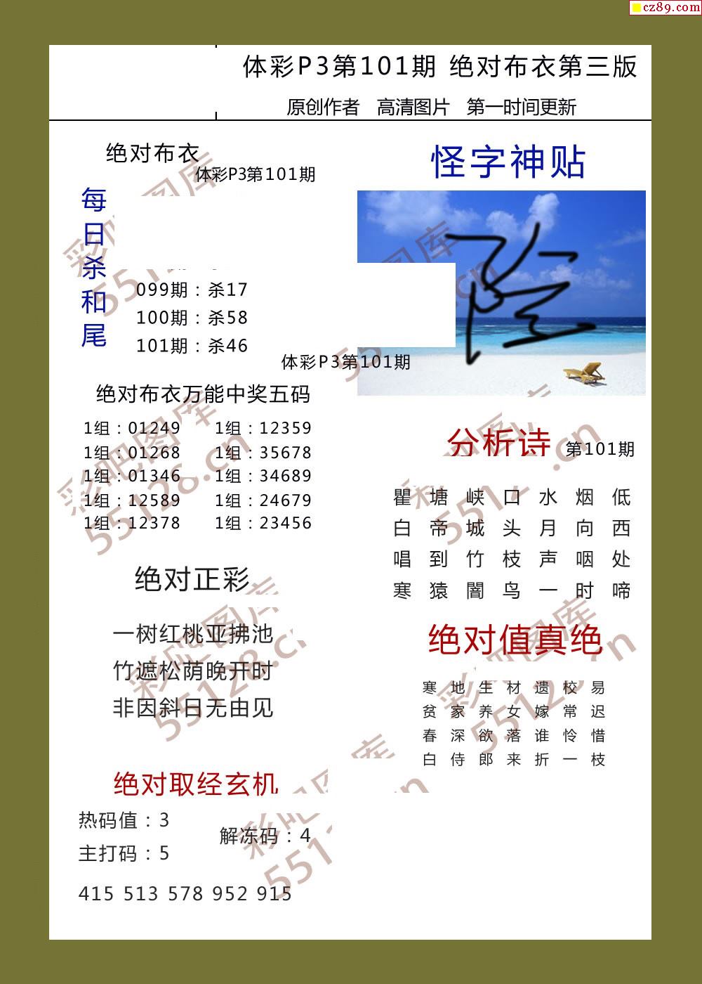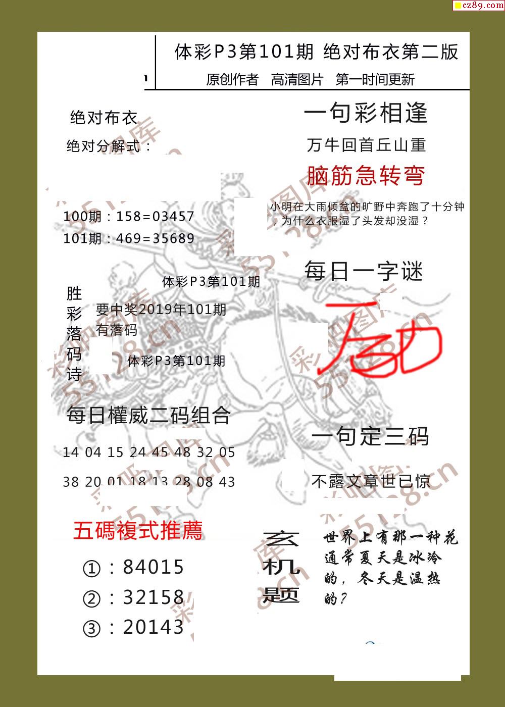 绝对布衣101期体彩p3图谜