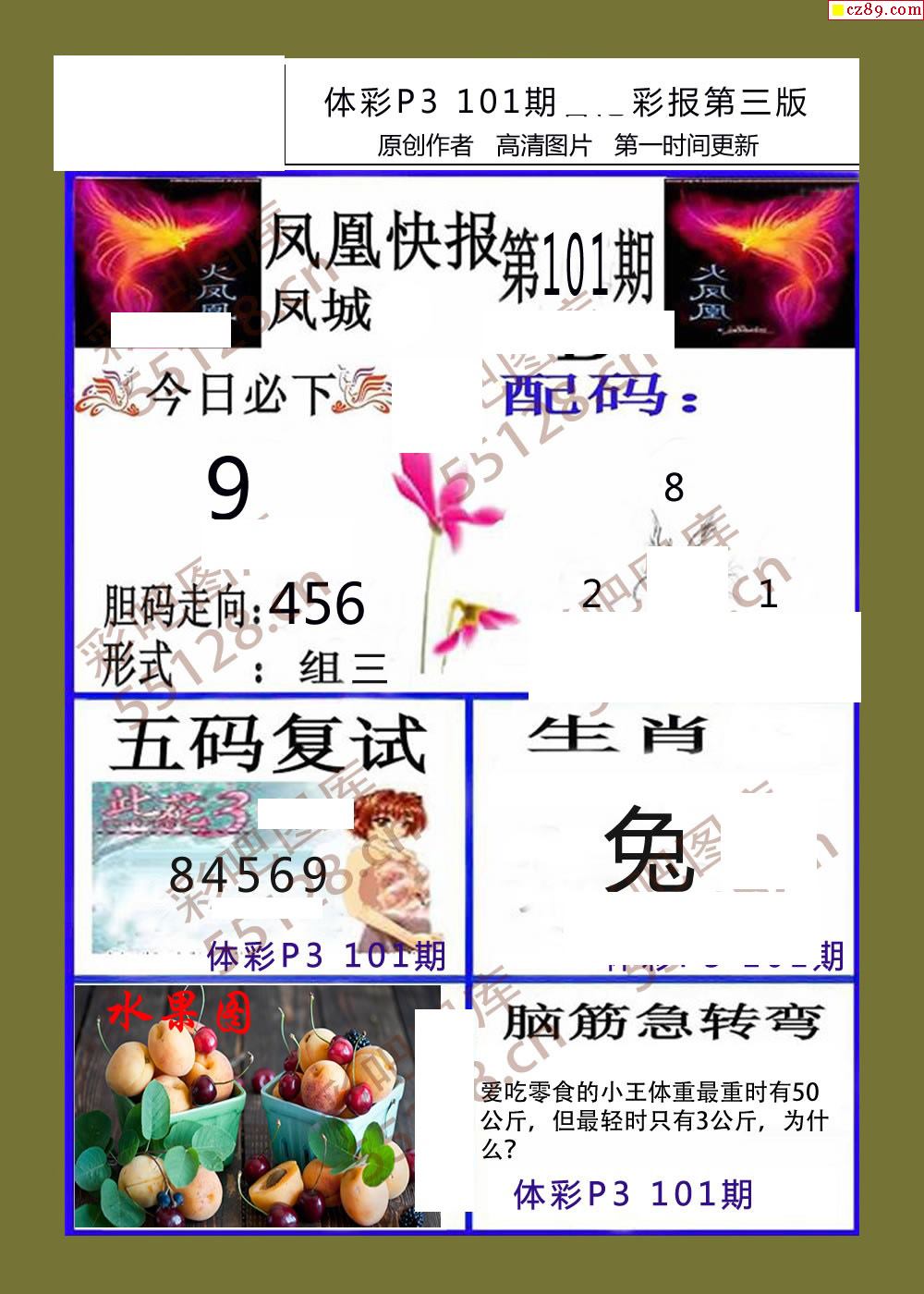 2026年101期牛彩网体彩P3画迷图谜汇总分享