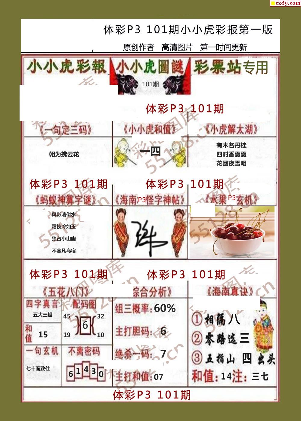 2026年101期牛彩网体彩P3画迷图谜汇总分享