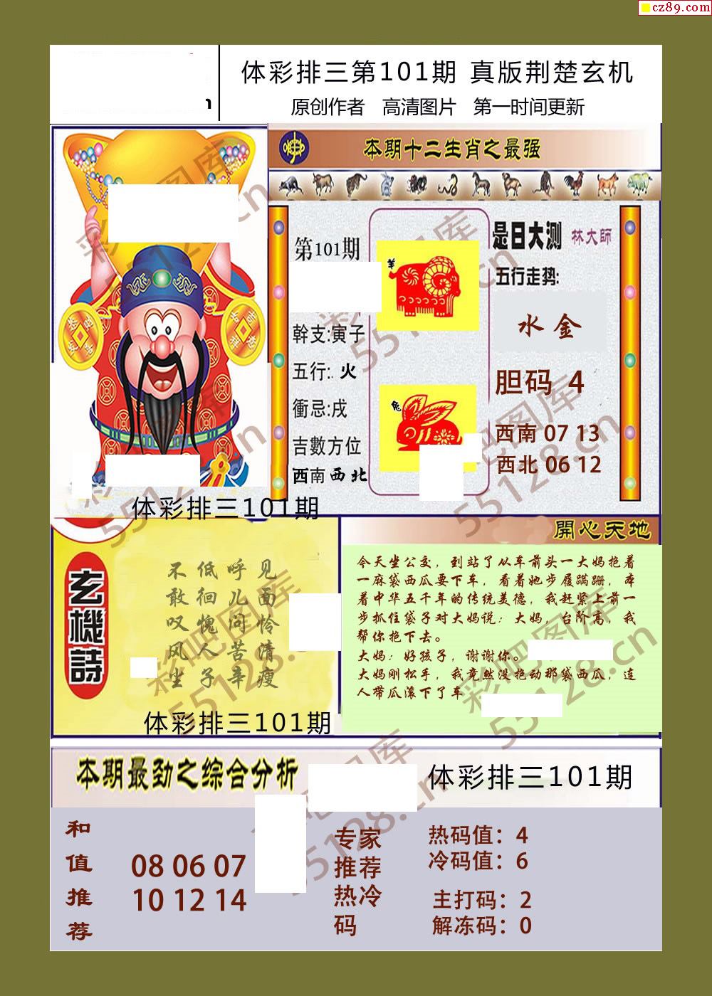 荆楚玄机101期体彩p3图谜