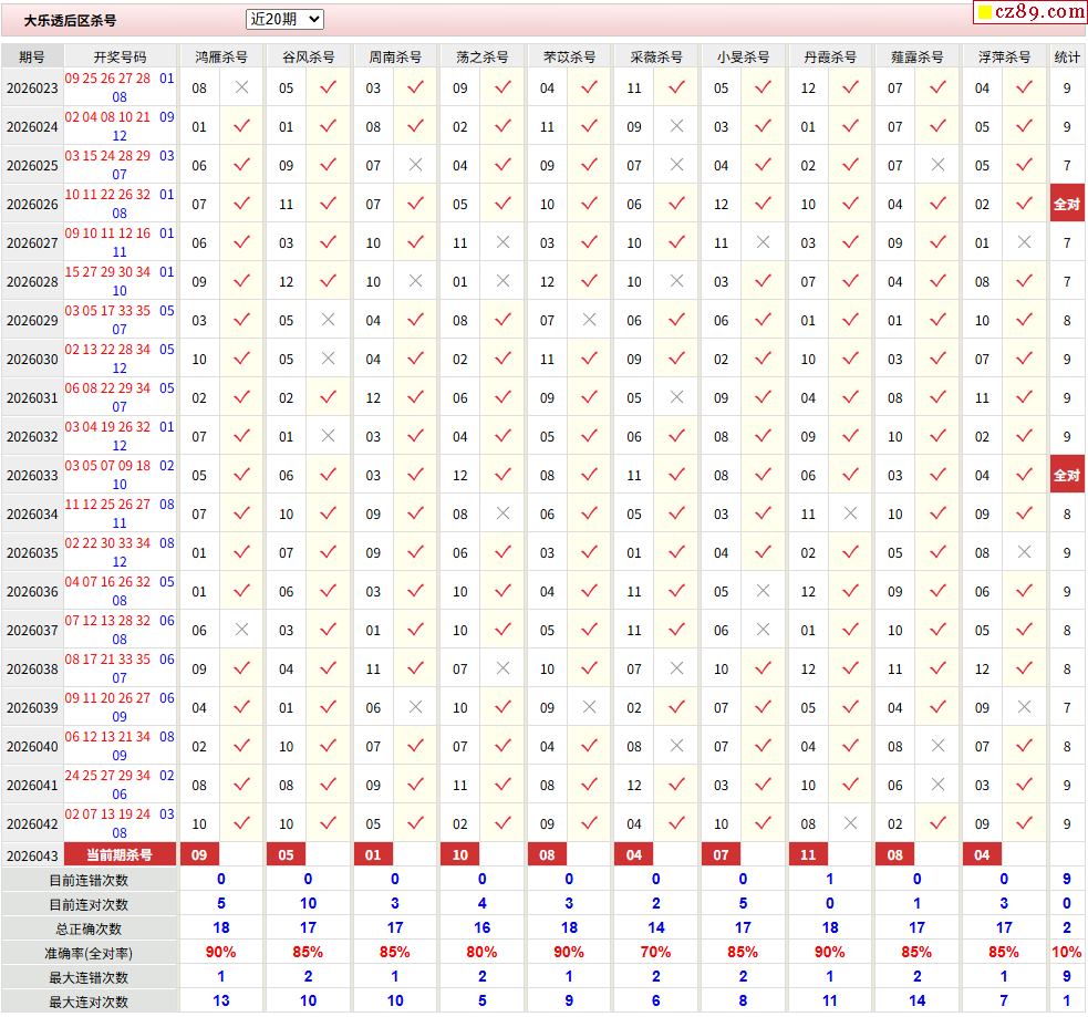 大乐透2026043期天下无贼后区杀号图谜 10中9