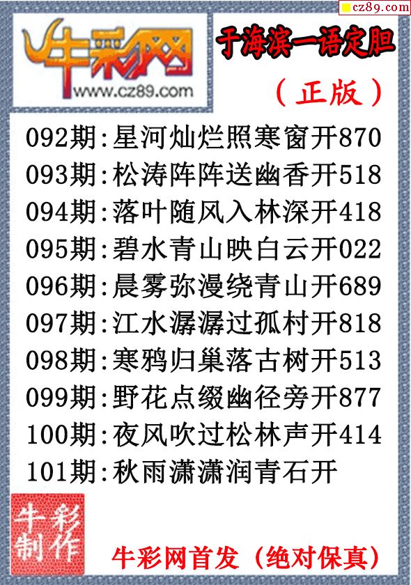 2026年101期七绝圣手3d和尾字谜【牛彩网...