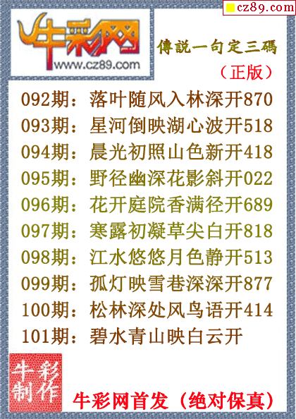 2026年101期七绝圣手3d和尾字谜【牛彩网...