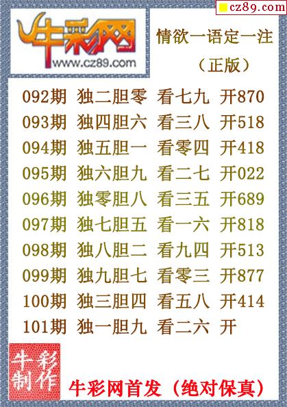 2026年101期七绝圣手3d和尾字谜【牛彩网...