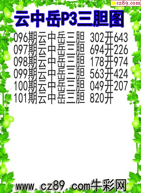 26年101期云中子体彩排列3胆码图