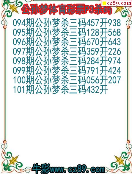 26年101期公孙梦体育彩票P3杀码图