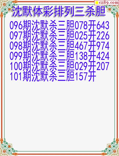 26年101期沈默体彩排列三杀胆图迷
