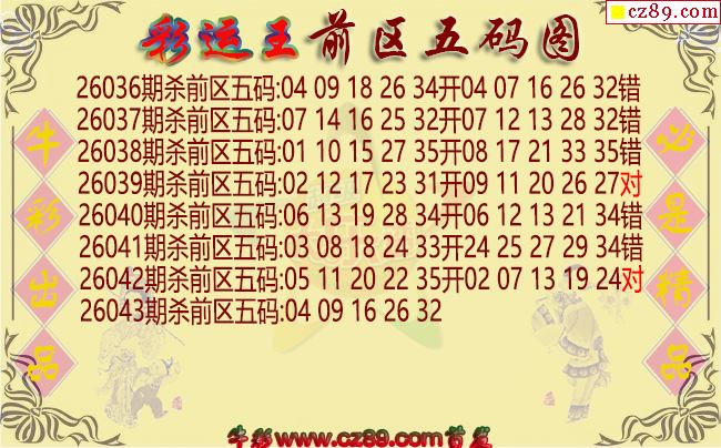 大乐透2026043期彩运王前区五码图谜