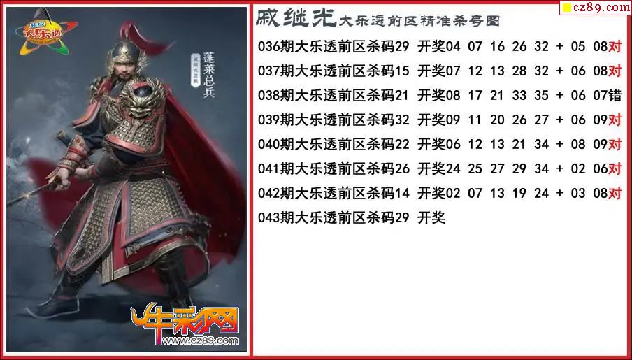 大乐透043期戚继光前区精准杀号图