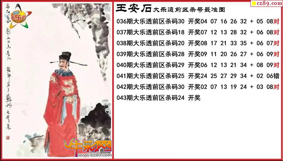 大乐透043期王安石前区杀号最准图