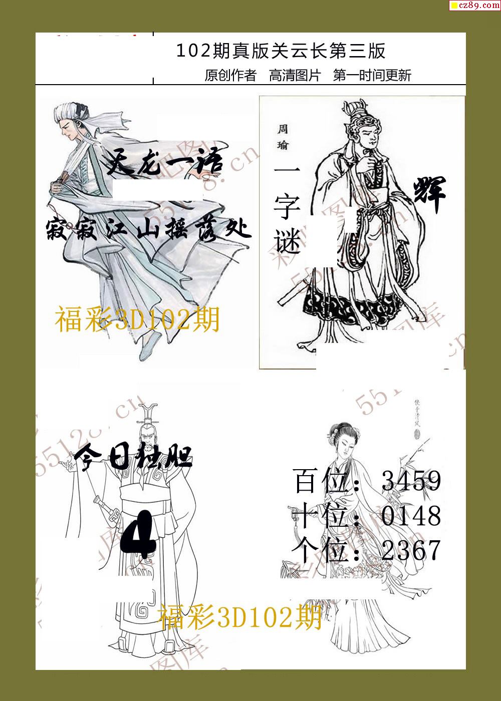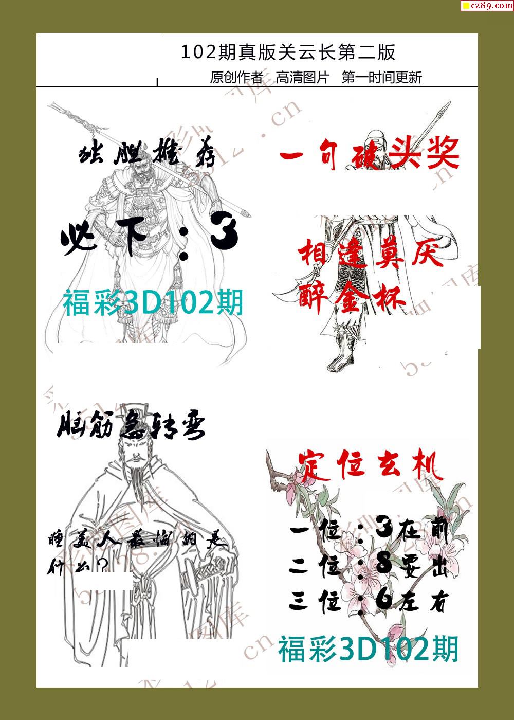 26年102期福彩3d真版关云长图谜
