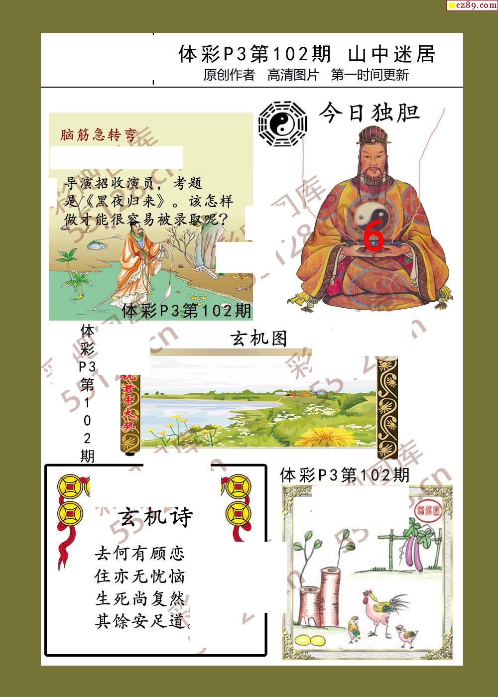 山中迷居102期体彩p3图谜