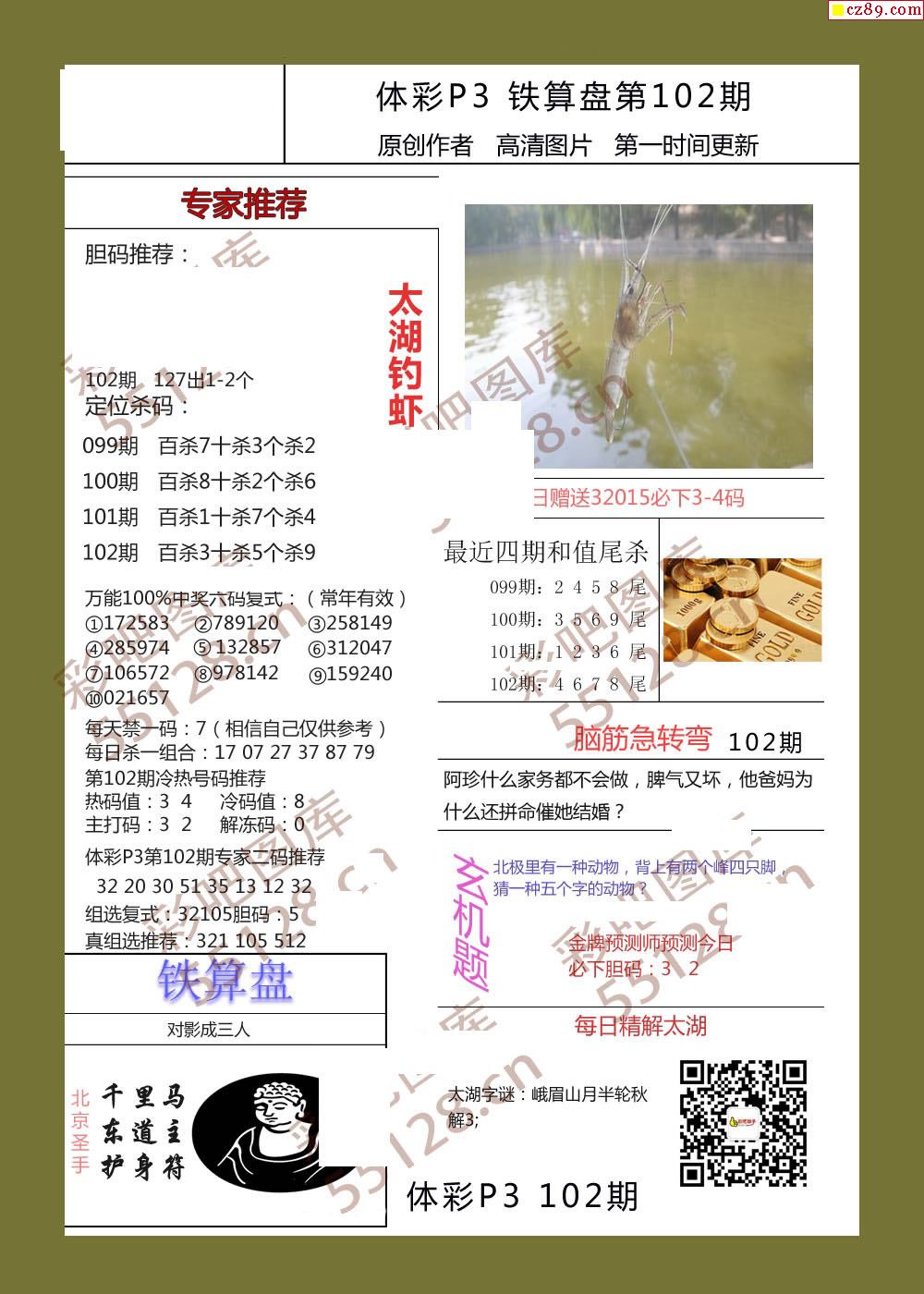 铁算盘102期体彩p3图谜