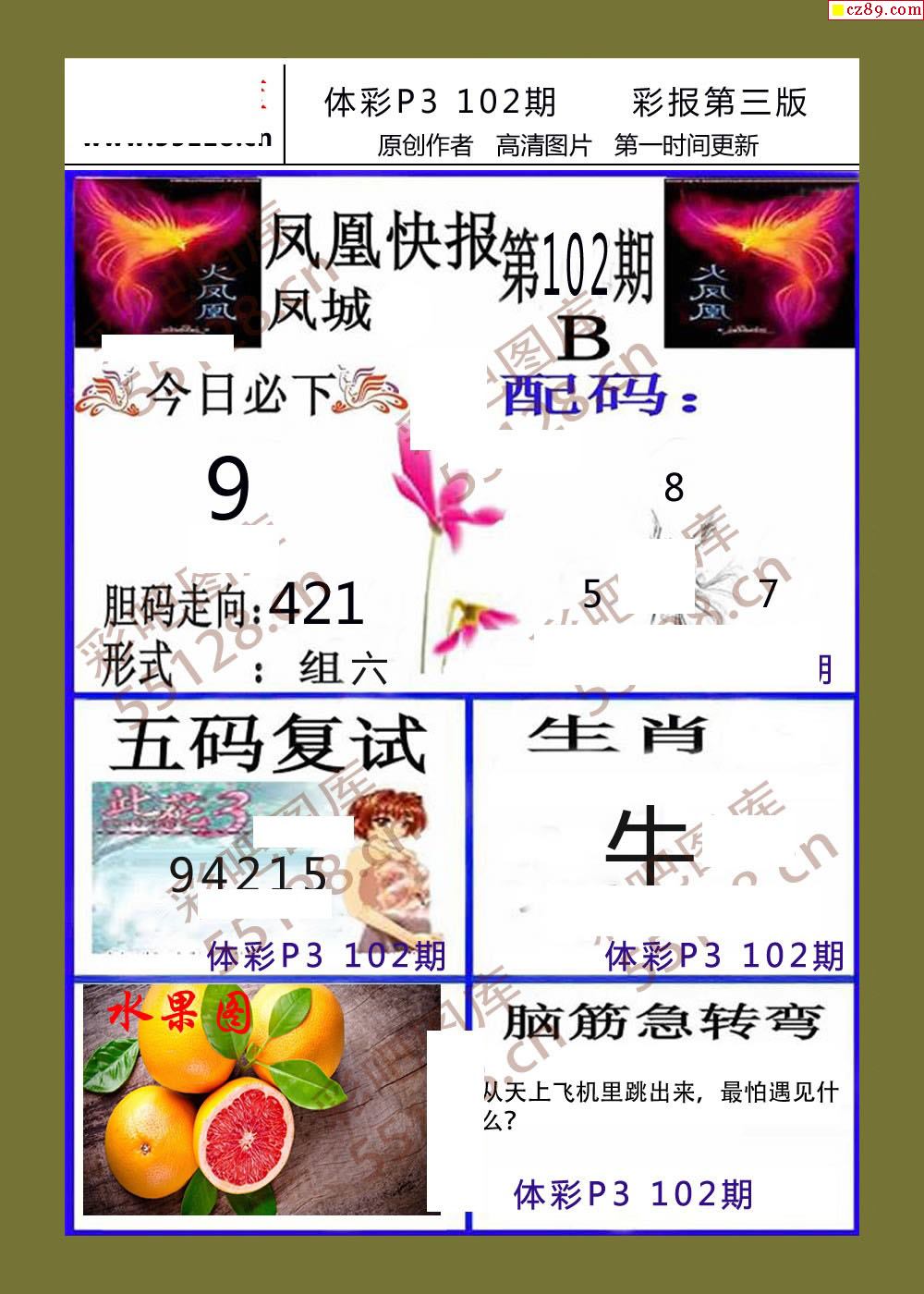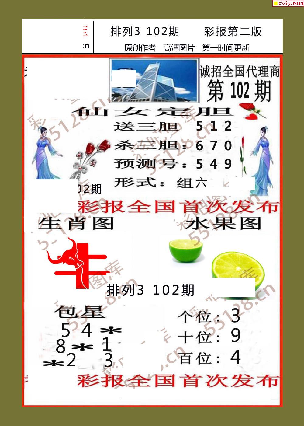 2026年102期牛彩网体彩P3画迷图谜汇总分享