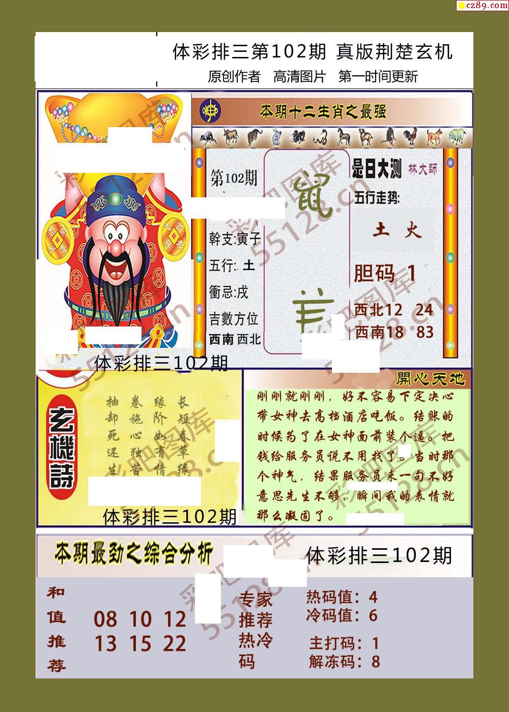 荆楚玄机102期体彩p3图谜