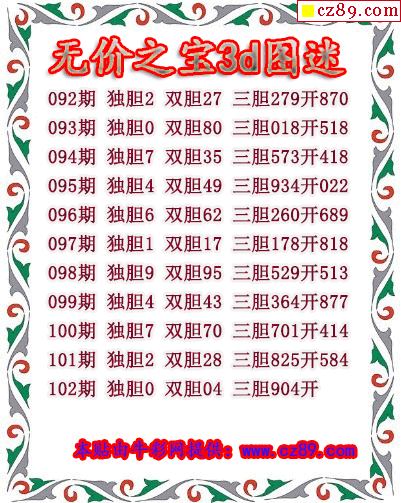 无价之宝送胆2026102期3d图谜(原创)
