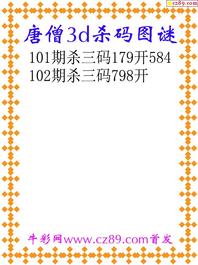 唐僧杀码26102期3d原创图谜