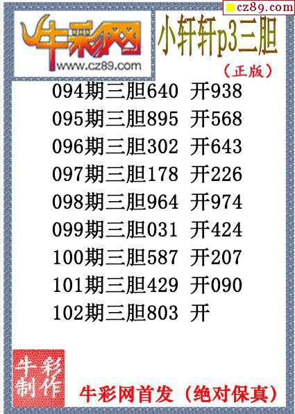 小轩轩三胆102期体彩P3图谜(原创)