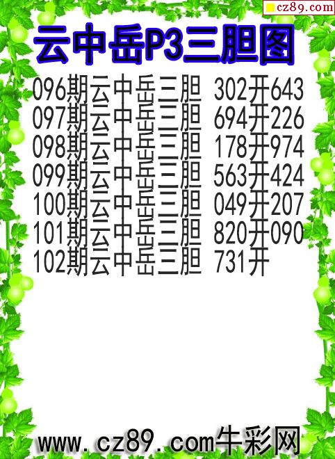 26年102期云中子体彩排列3胆码图