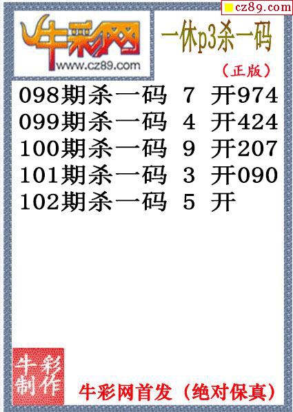 26年102期公孙宇P3杀码图