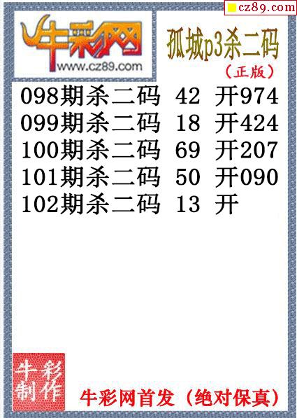 26年102期公孙宇P3杀码图