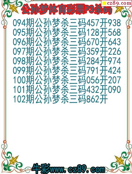 26年102期公孙梦体育彩票P3杀码图