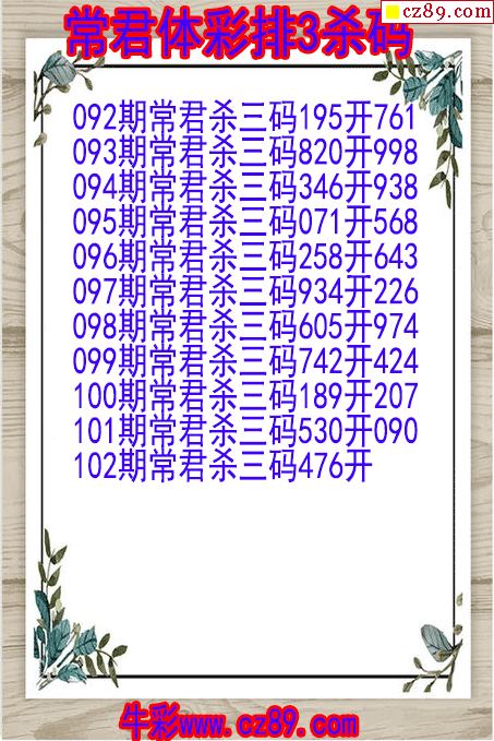 26年102期常君体彩排3杀码图