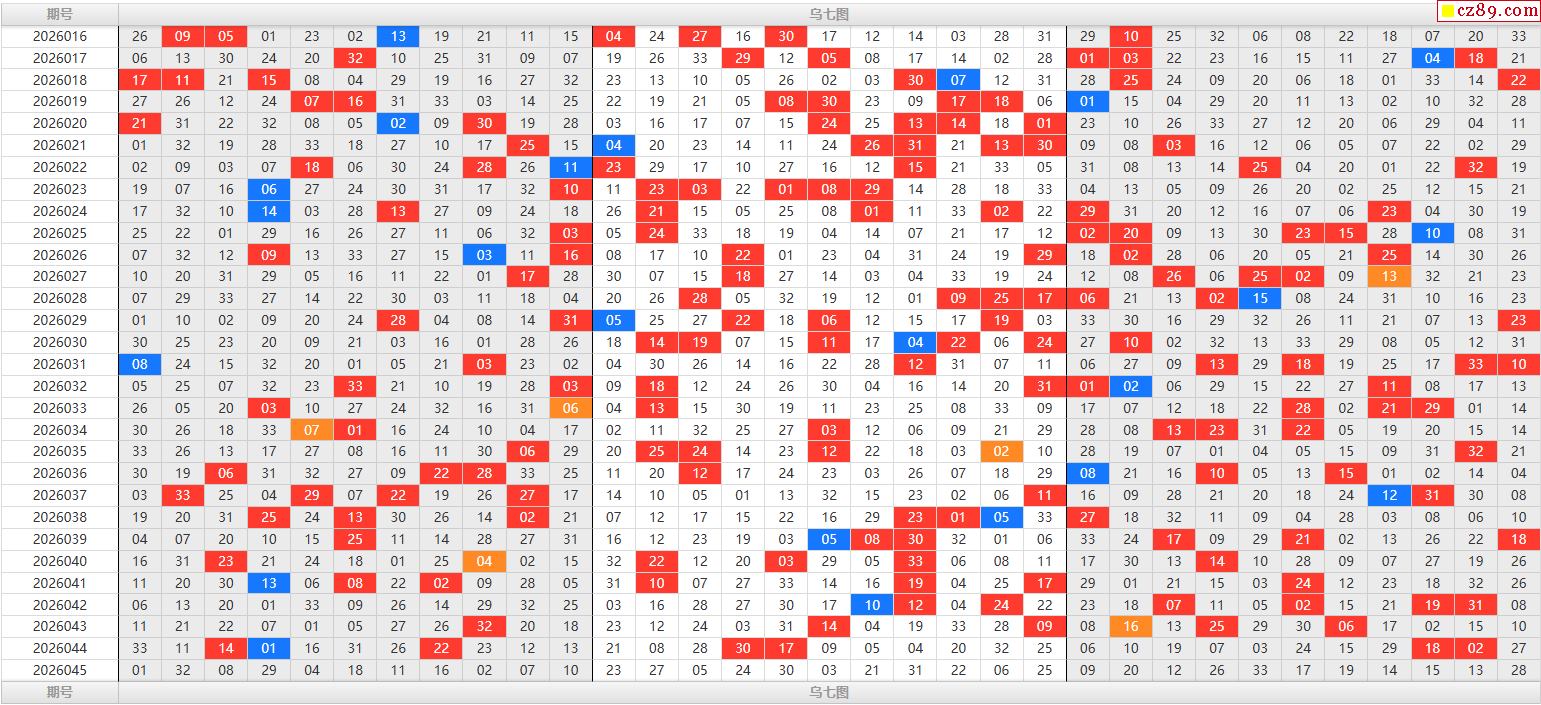 26年福彩双色球045期乌七图表