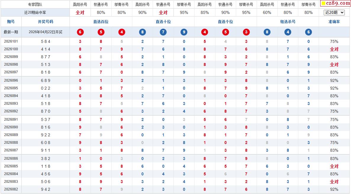 26年102期彩宝贝专家福彩3D杀号定码图表