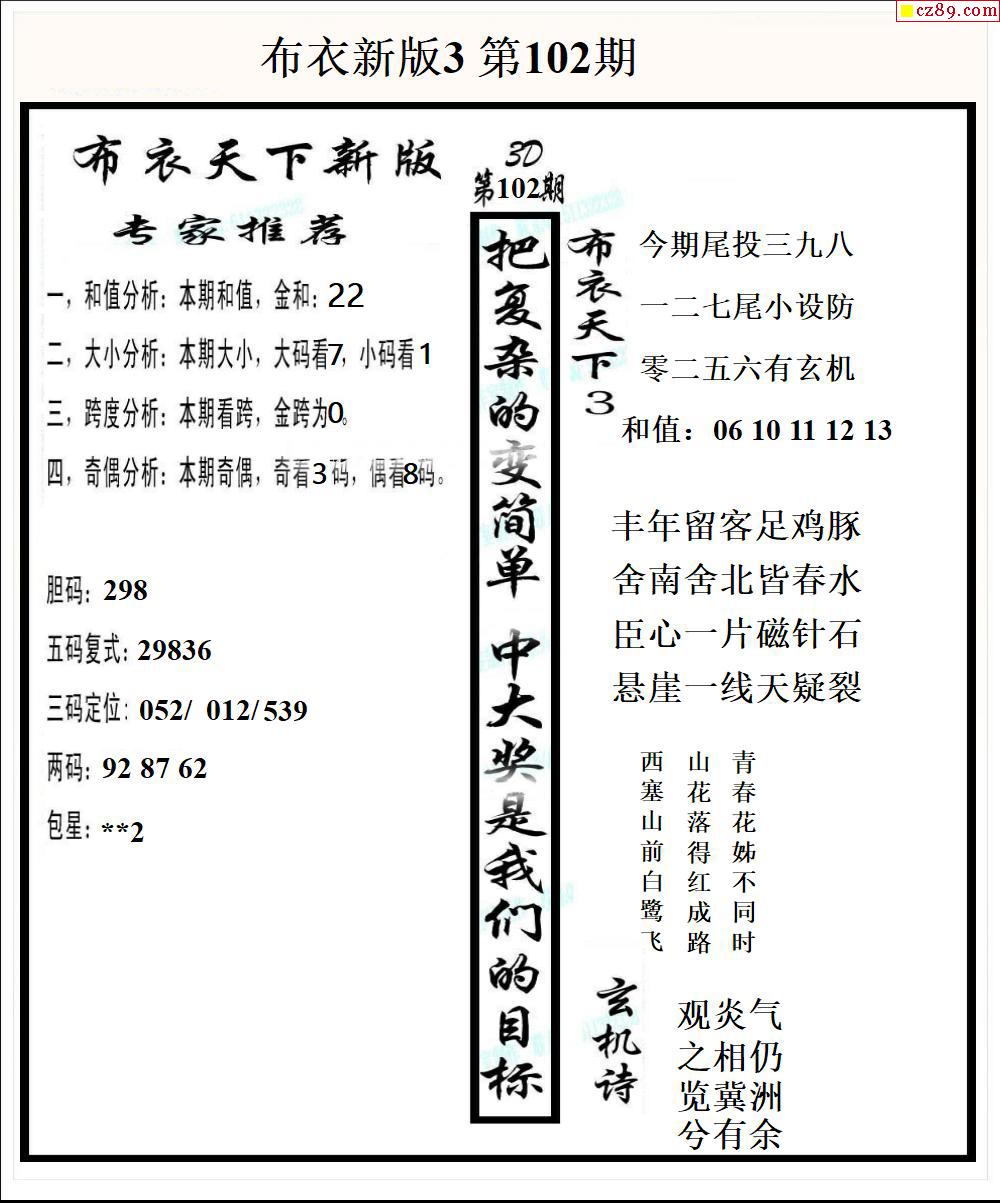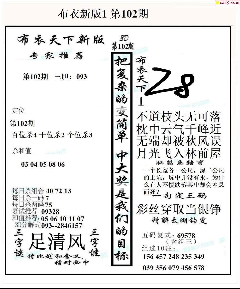 布衣天下新版2026102期3d图谜