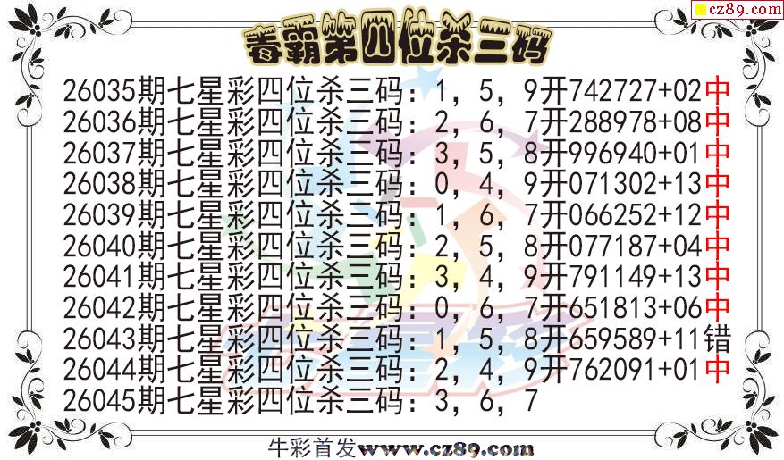 七星彩2026045期毒霸第四位杀三码图迷 ...