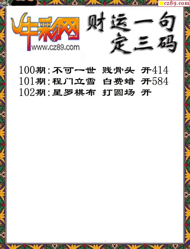 2026103期牛彩一句定三码