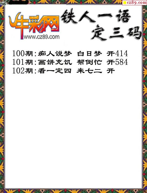 福彩3D2026102期铁人一句定三码字图谜
