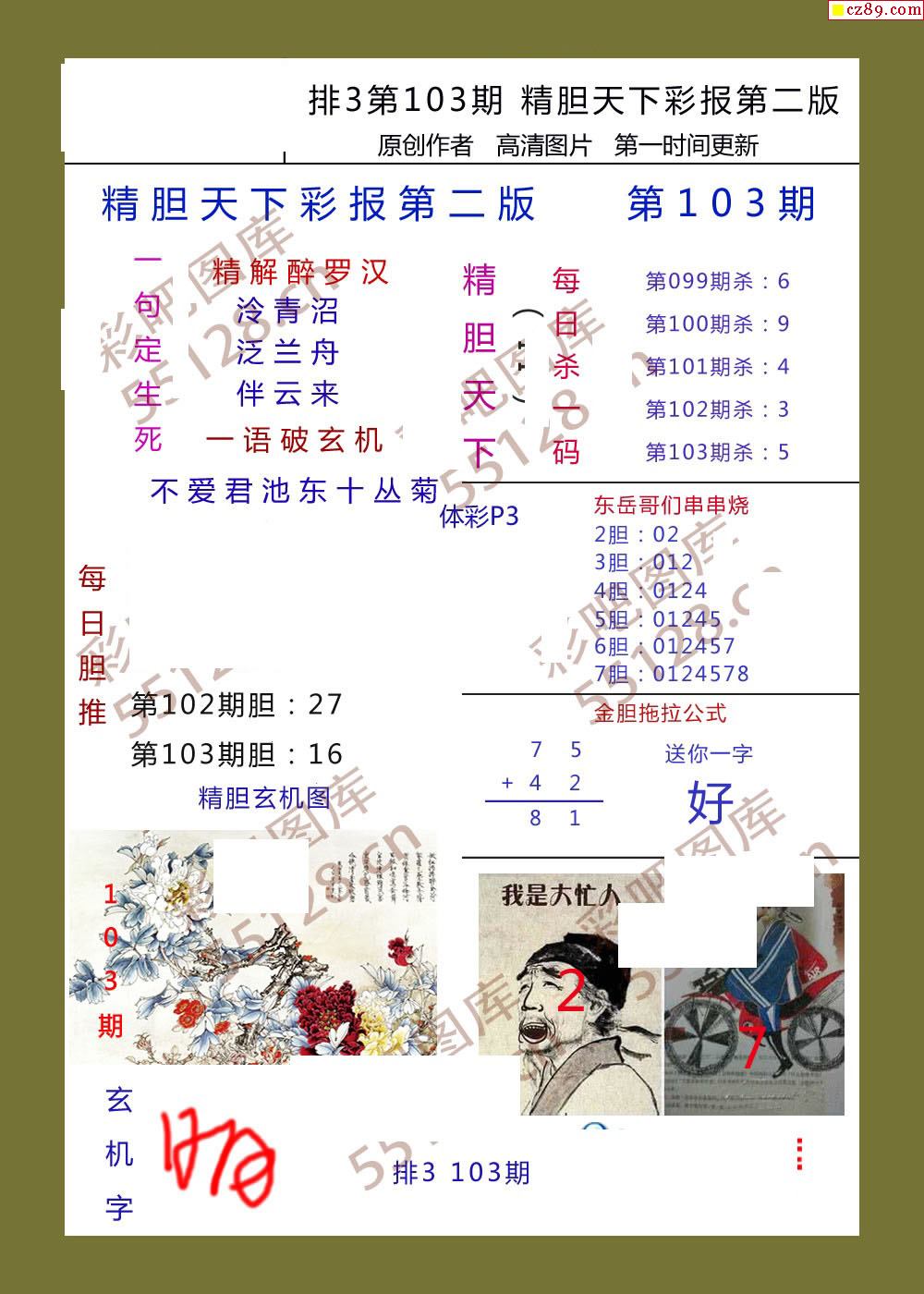 2026年103期牛彩网体彩P3画迷图谜汇总分享