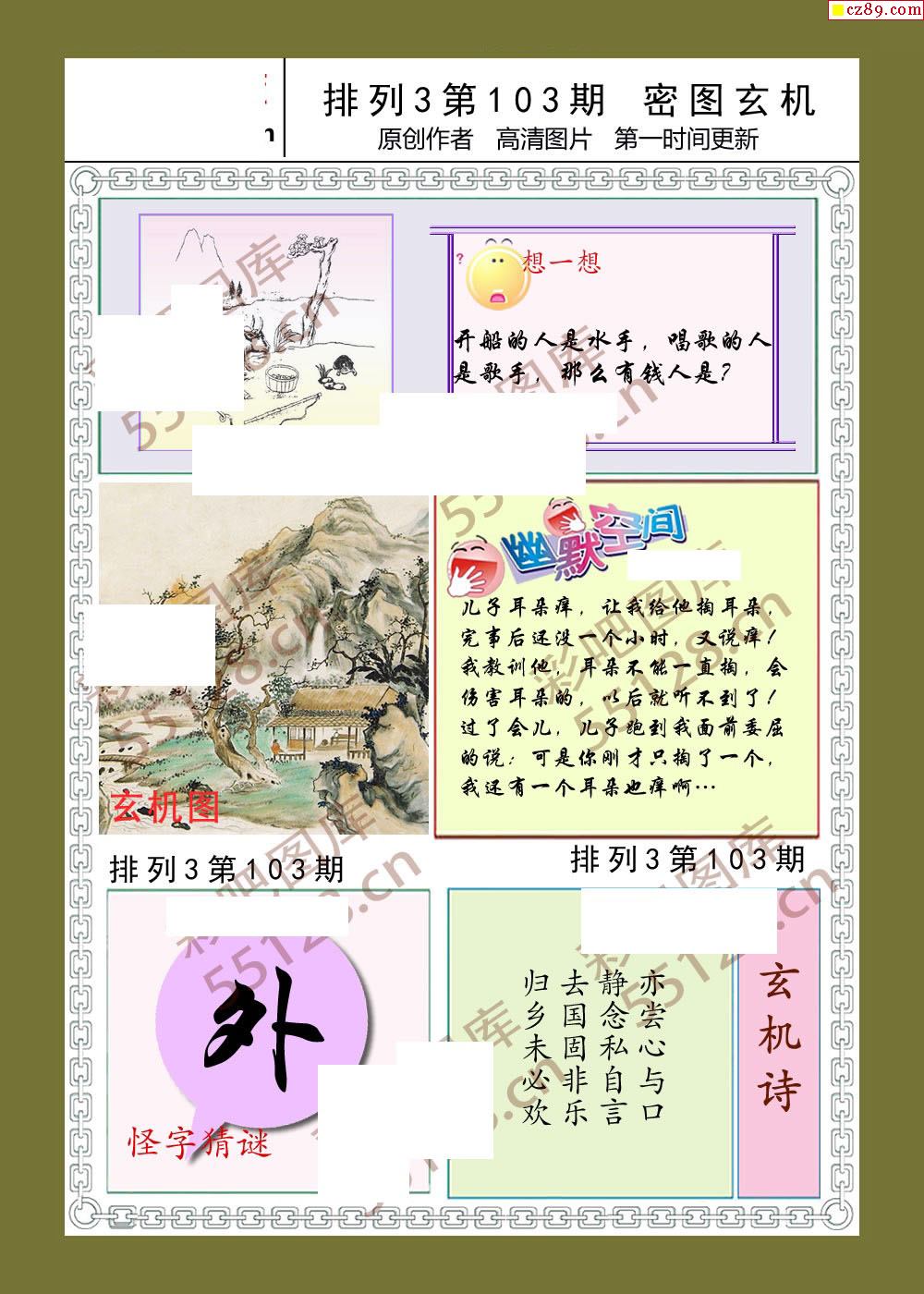 密图玄机103期体彩p3图谜