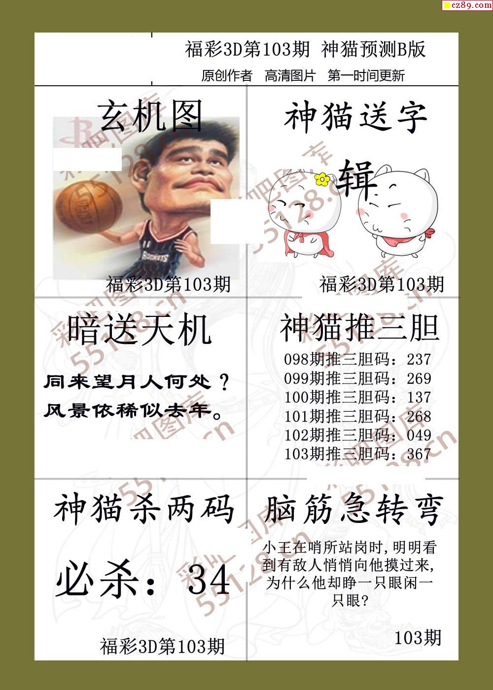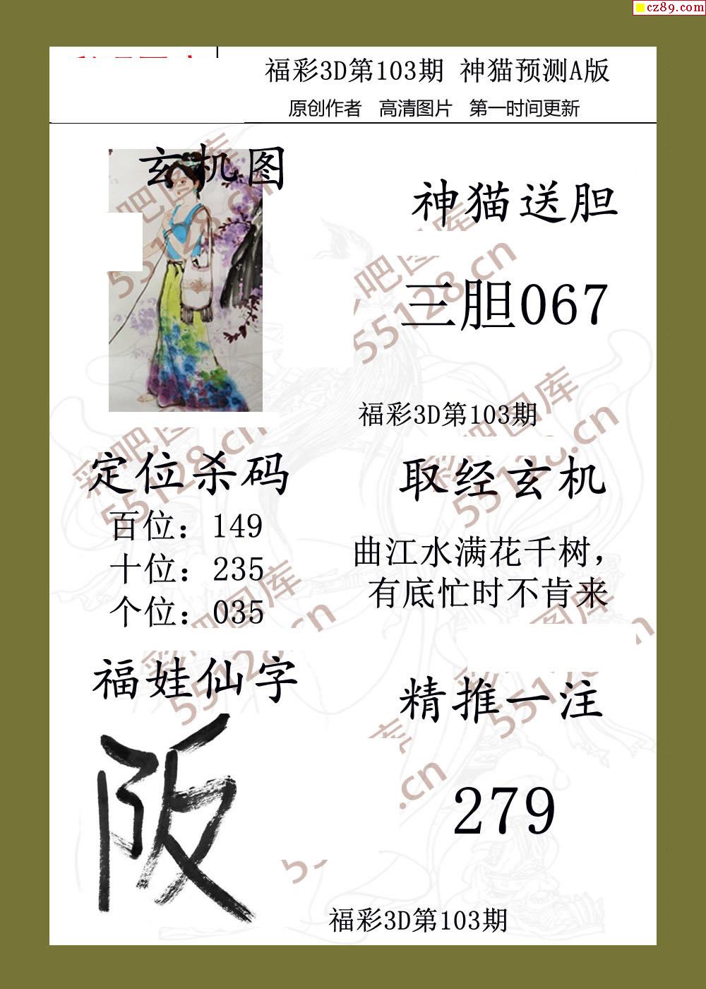 福彩名家福利彩票3d26年103期图谜