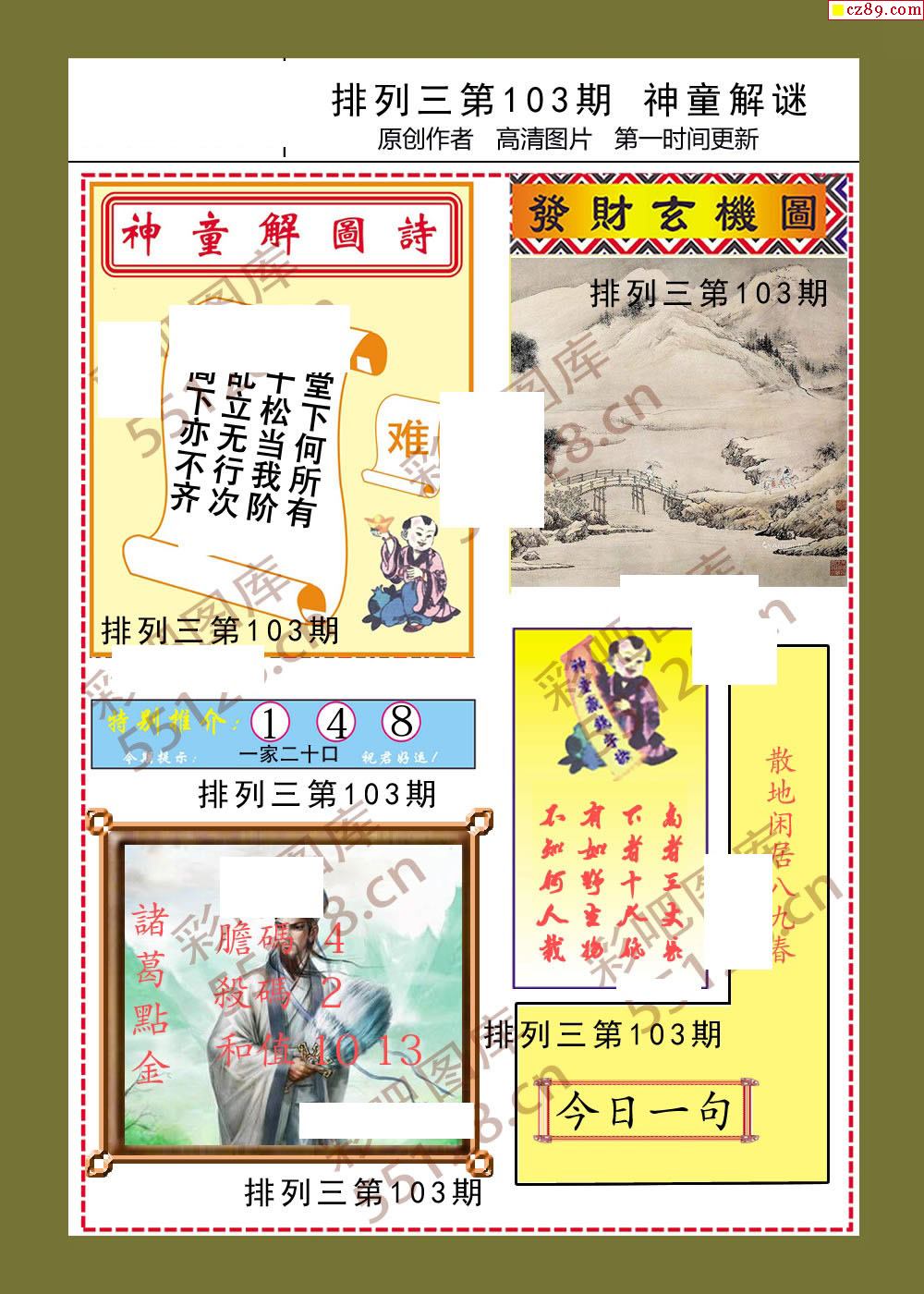 神童解迷彩报103期体彩p3图谜