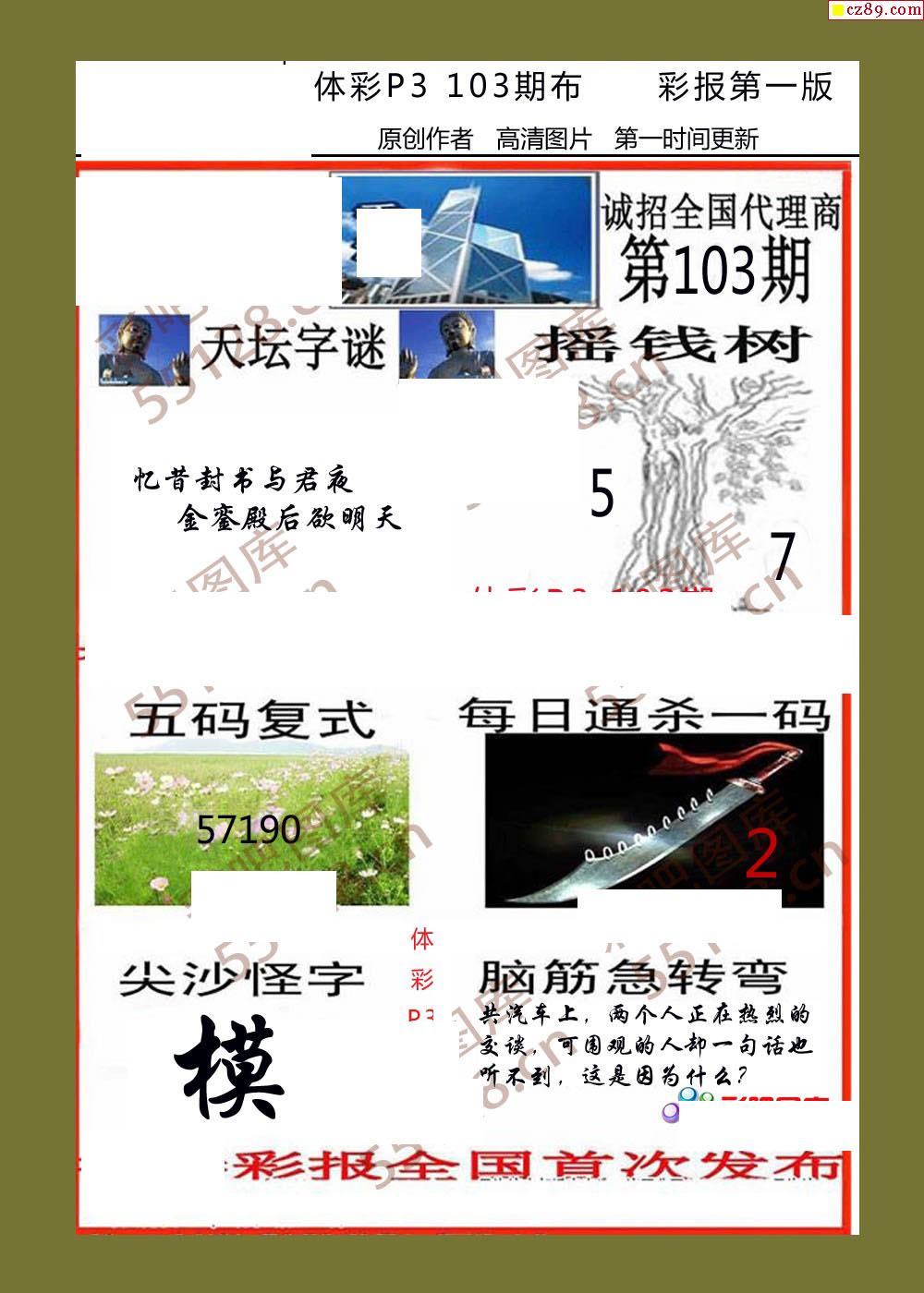 2026年103期牛彩网体彩P3画迷图谜汇总分享