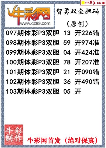鸿运当头双胆报号103期体彩P3图谜