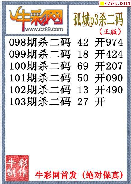 26年103期公孙梦体育彩票P3杀码图