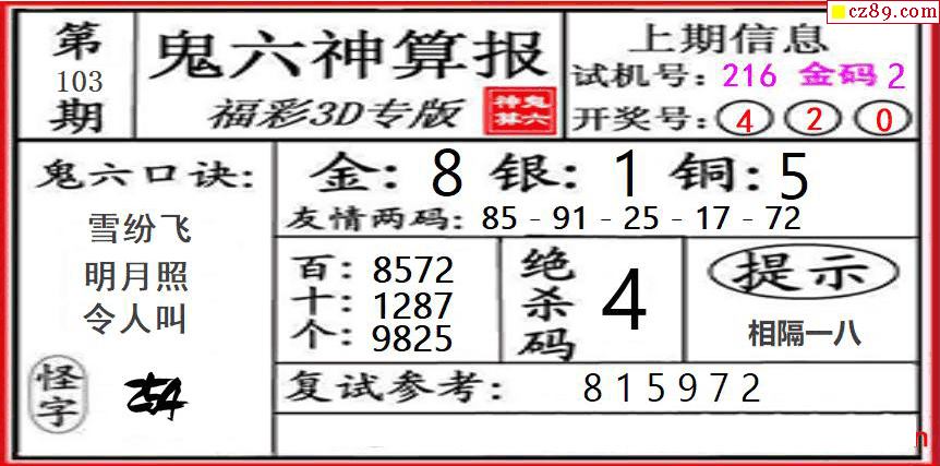 鬼六神算2026103期3d图谜