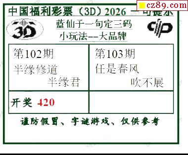 2026103期蓝仙子一句定三码