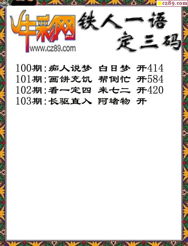 福彩3D2026103期铁人一句定三码字图谜