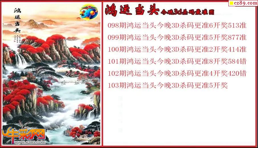 26年103期3d 鸿运当头今晚杀码更准图