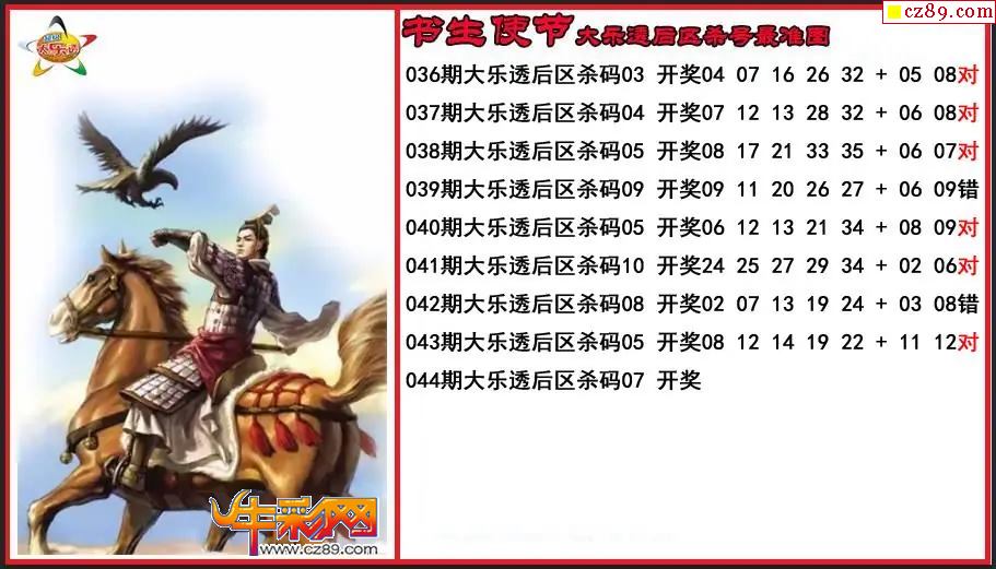 大乐透044期书生使节后区杀号更准图
