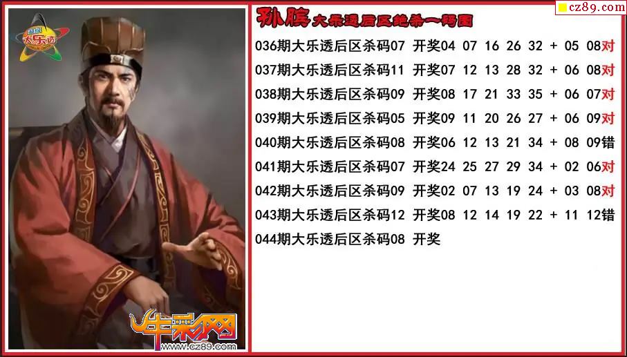 大乐透2026044期孔融前区杀号图谜 10中8