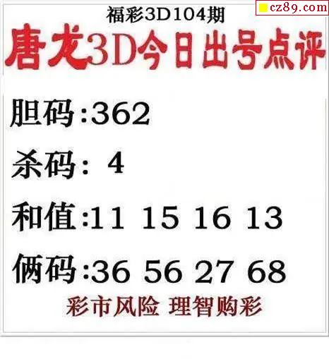 唐龙点评2026104期3d图谜