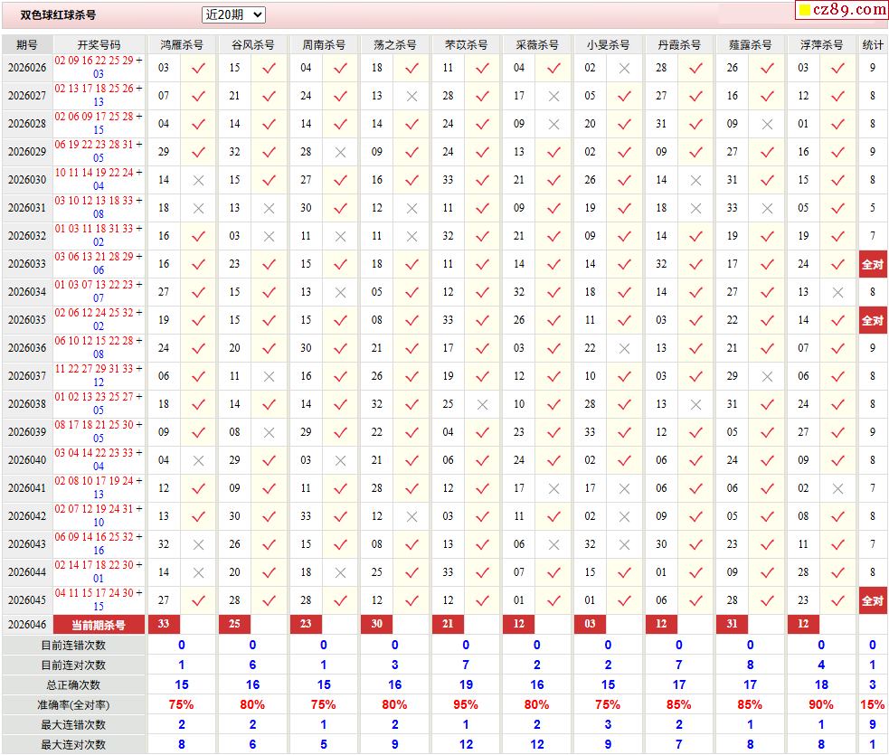 双色球046期 彩宝贝专家红蓝球杀号预测图表