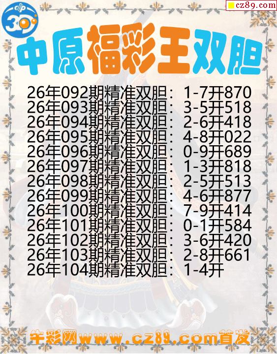 中原福彩王双胆104期3d图谜