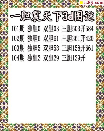 一胆震天下独胆2026104期3d图谜(原创)